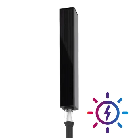 De naadloos geïntegreerde verticale panelen maken de PREVIA-zonnelamp esthetisch aantrekkelijk en onopvallend.
