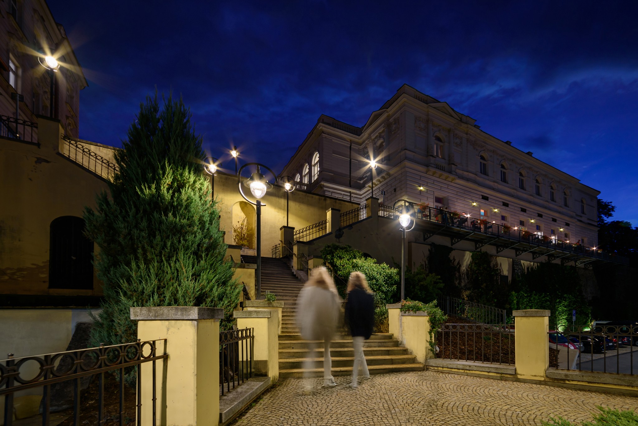 Wanneer de duisternis valt en de stad wordt verlicht, veranderen de straten van Tábor in een veilige en uitnodigende omgeving, badend in een zacht en aangenaam wit licht dat mensen uitnodigt omer te vertoeven. De sfeer is rustig, gezellig en harmonieus – net als Tábor zelf.