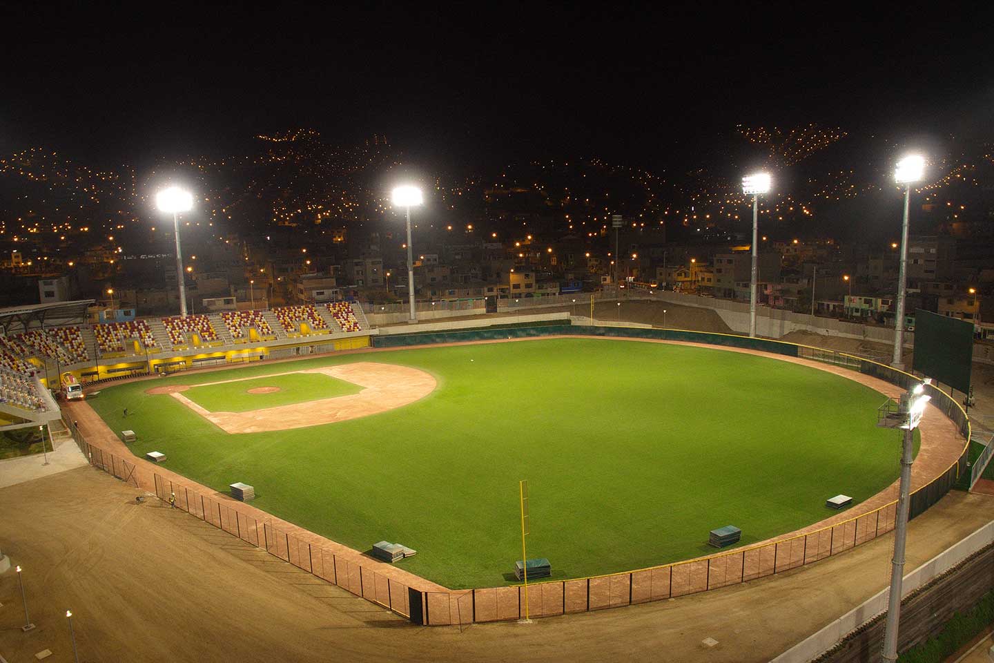 Het honkbalveld wordt verlicht door OMNIBLAST schijnwerpers die zijn geïnstalleerd op zeven 32 meter hoge masten en één 40 meter hoge mast.