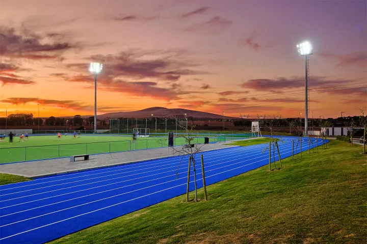 De nieuwe campus beschikt ook over sportfaciliteiten zoals een 400 meter lange atletiekbaan, zes harde tennisbanen en een astrogras hockeyveld. De school wilde een zeer efficiënt en kosteneffectief verlichtingssysteem voor deze faciliteiten, zodat de leerlingen buiten de daglichturen kunnen trainen en spelen en het hele jaar door optimaal kunnen profiteren.