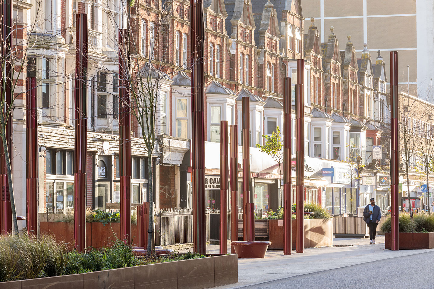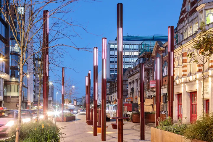 Op maat gemaakte zuilen integreren verlichting en geluid voor een meeslepende ervaring in het hart van Bournemouth