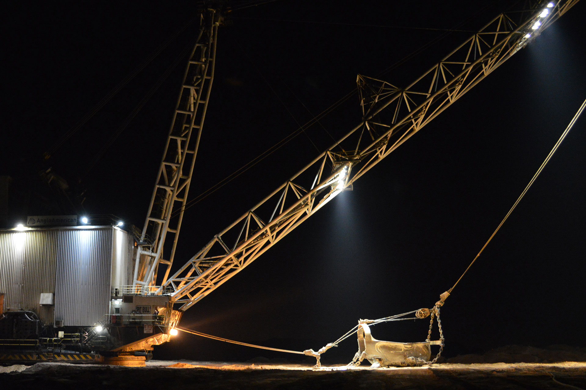Bij het verlichten van de kolen graafmachine en het machinehuis in eMalahleni, Zuid-Afrika, wilde Anglo American een verlichtingsoplossing die zou zorgen voor een eenvoudig en minimaal onderhoud omdat de machine non-stop in werking is en onderhevig is aan zware trillingen.