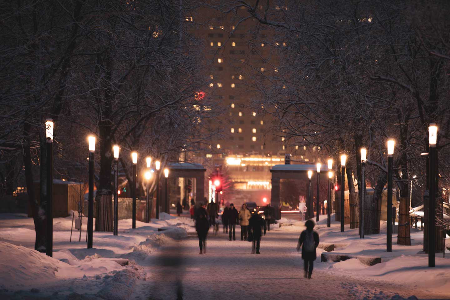 Kwaliteitsverlichting was van cruciaal belang om te zorgen voor een open en toegankelijke openbare ruimte om in de uren na zonsondergang te communiceren, vooral in de donkere wintermaanden. Een LED-verlichtingsoplossing was de voor de hand liggende keuze vanwege het lage energieverbruik en de ecologische voetafdruk.