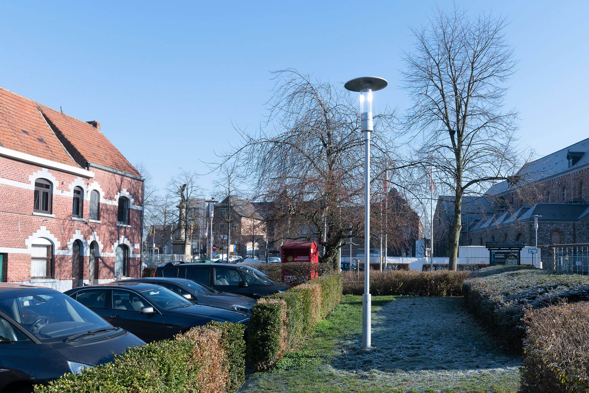 De SHUFFLE paaltop was de ideale oplossing. Verkrijgbaar met een breed scala van fotometrische lichtverdelingen, het verlicht perfect de diverse openbare ruimtes in de stad, inclusief de pleinen, woonstraten en commerciële slagaders. Uitgerust met een 360° cilindrische lichtkap, voegt het een vleugje elegantie toe aan het landschap. Geïnstalleerd op masten en muurbeugels brengt het esthetische coherentie aan een verscheidenheid van omgevingen. Door het vervangen van de oude armaturen uitgerust met 150W ontladingslampen door de 33W SHUFFLE paaltop armaturen, heeft de stad haar energieverbruik met 70% verminderd.