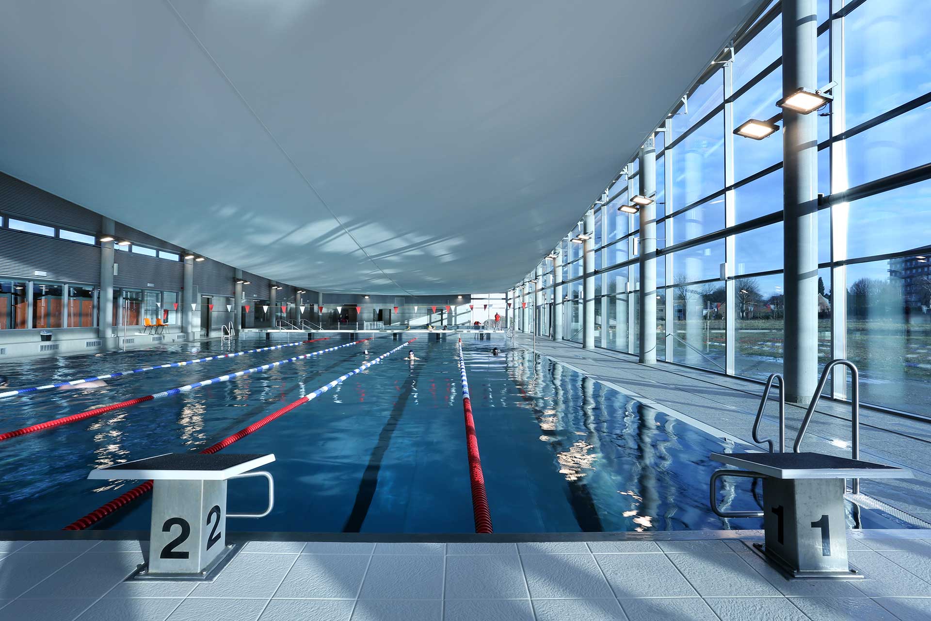 Door het gematigde klimaat in België en de ruime openingsuren (9 tot 19 u. of tot 22 u. van dinsdag tot zaterdag) van het zwembad is echter ook heel wat kunstlicht nodig om steeds een gemiddelde verlichting te garanderen van 600 lux over de bruikbare oppervlakte van 1200 vierkante meter.
