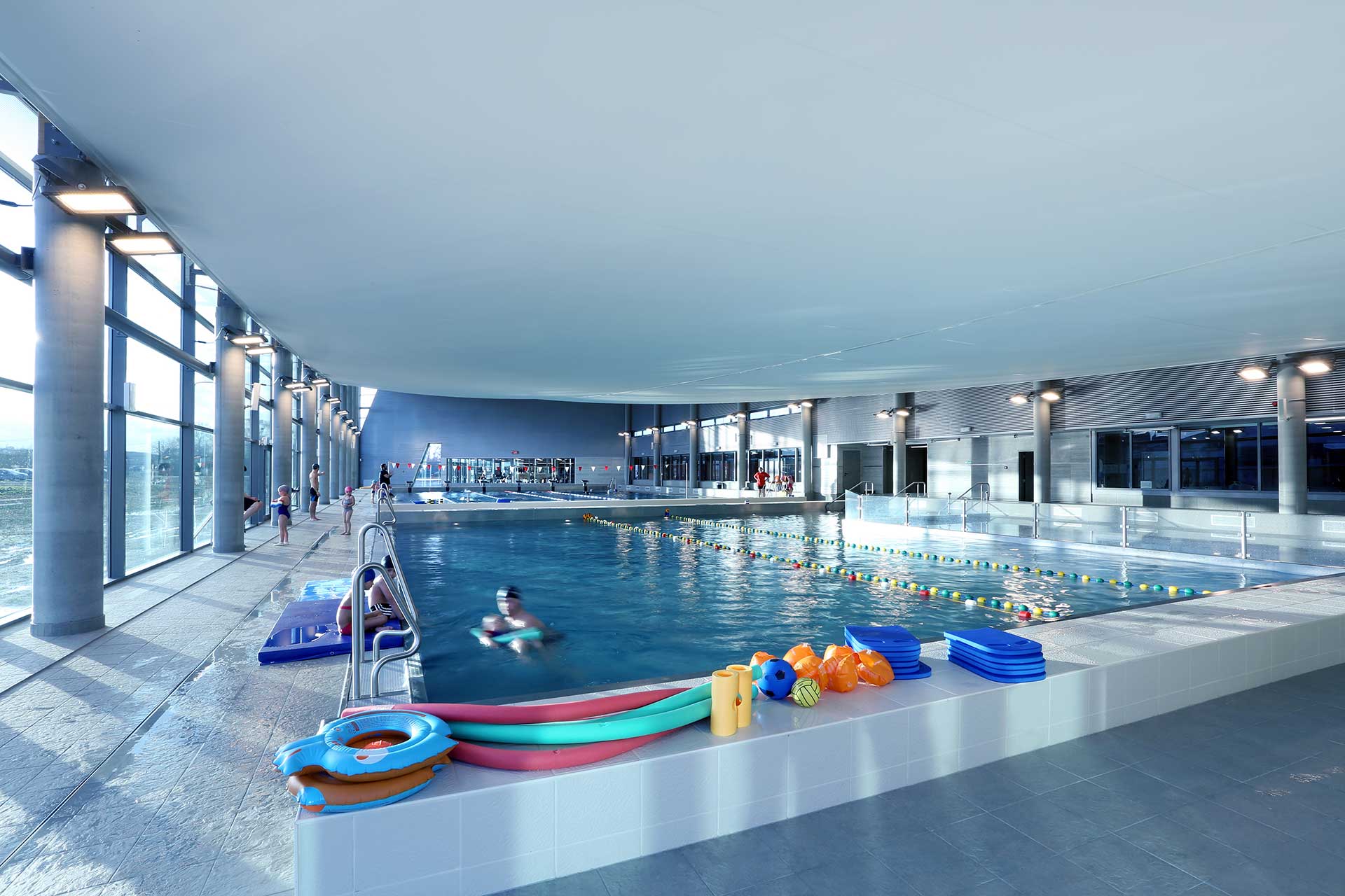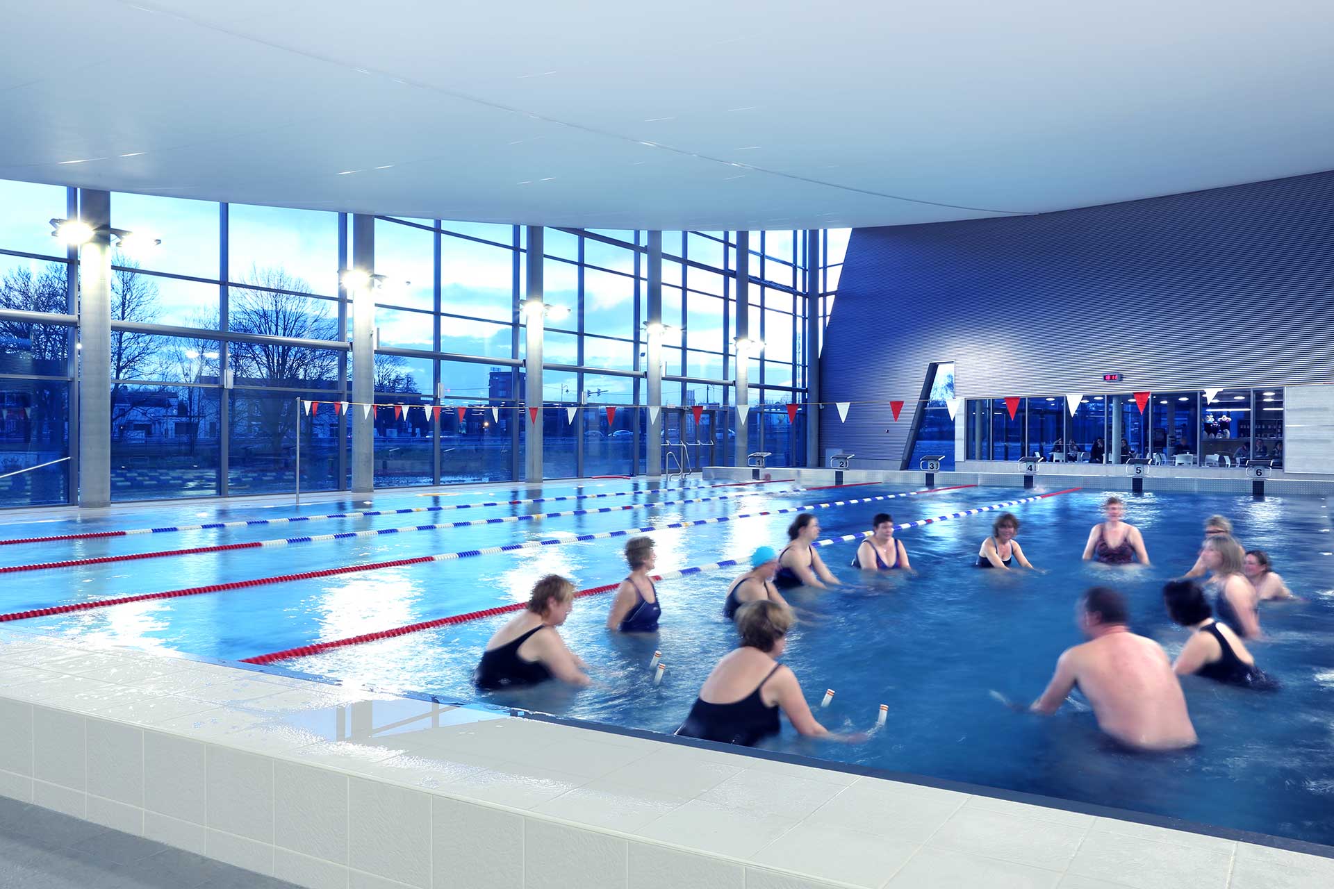 Nooit te veel licht, maar ook nooit te weinig: het zwembad van Ans biedt de gebruikers een veilige én comfortabele omgeving waarbij enkel de hoogstnodige energie wordt verbruikt. De zachte en geleidelijke aanpassingen van de lichtintensiteit zijn niet waarneembaar. Ze hebben geen enkele impact op de activiteit van de medewerkers en de zwemmers, die volop kunnen genieten van hun vrije tijd in ideale omstandigheden.