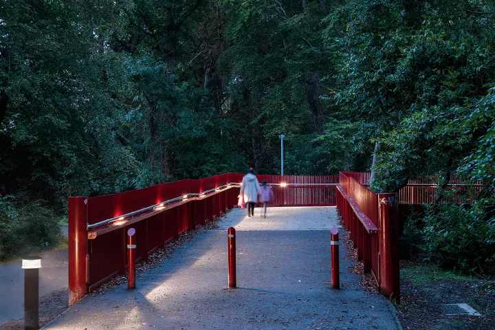 Er werden energiezuinige AXIA armaturen geïnstalleerd op de paden die van en naar de bruggen leiden om een gemakkelijke overgang van het park naar de bruggen te garanderen.