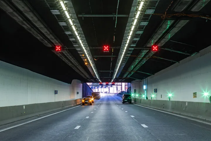 Om te voldoen aan de CIE-normen van verlichtingsniveaus, waarbij de veiligheid wordt gewaarborgd, werd bij de tunnelingangen een aanvullende verlichting geïnstalleerd bestaande uit slim beheerde TFLEX MODULE-armaturen. Door het verlichtingsniveau aan te passen aan de lichtsterkte buiten, wordt bestuurders visueel ongemak bespaard.