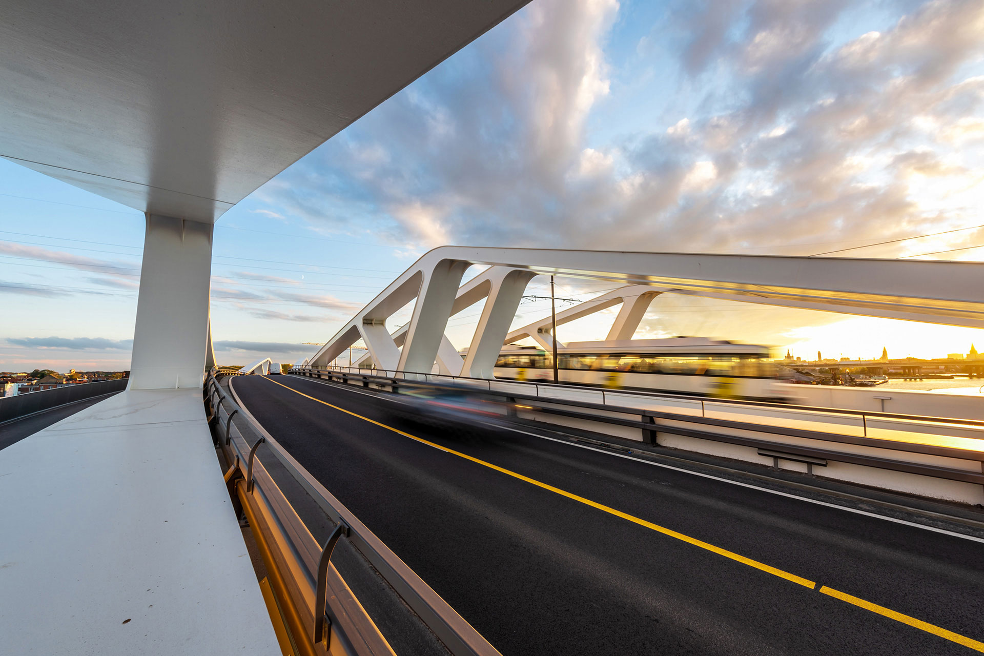 De oude brug maakte plaats voor 3 nieuwe bruggen. De buitenste bruggen hebben elk 2 rijstroken voor het wegverkeer en brede, veilige fiets- en voetpaden. Over de middelste brug rijden de trams.