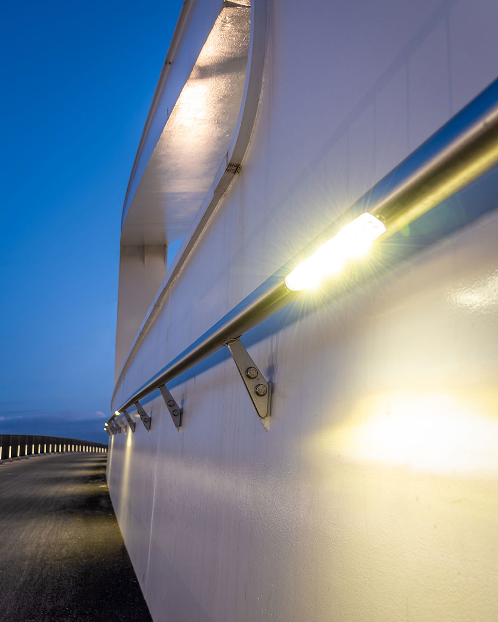 Dankzij de installatie van LED armaturen verbruikt de verlichting amper iets en moet ze maar minimaal worden onderhouden, wat voor dit soort omgeving toch belangrijk is. De verschillende armaturen met hun aan de omgeving aangepaste fotometrie zorgen er bovendien voor dat de verschillende soorten gebruikers de brug veilig en comfortabel kunnen oversteken. De verticaal geïntegreerde ILUM MARK armaturen ten slotte onderstrepen de prachtige architectuur van dit indrukwekkende kunstwerk en maken er een iconisch monument van.