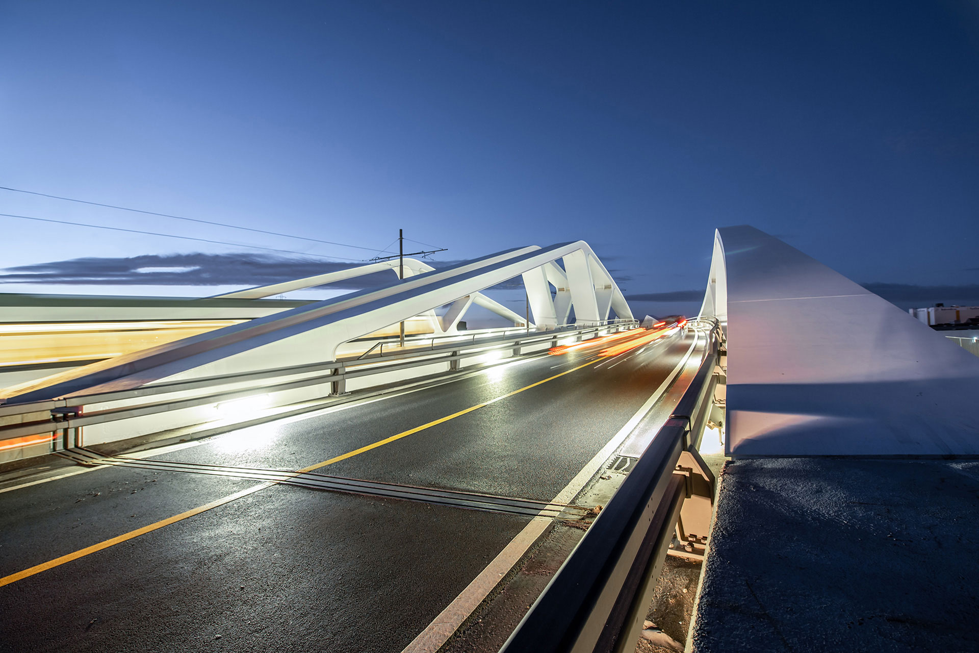 De SCULPLINE 2 armaturen verlichten de rijstroken voor de automobilisten. De armaturen moesten op een beperkte hoogte worden geïnstalleerd, bijvoorbeeld onder de vangrails. Op die installatiehoogte genoeg licht krijgen, was een echte uitdaging. Dankzij een gedetailleerde studie kon de fotometrie worden aangepast om de rijstroken gelijkmatig te verlichten en de automobilisten niet te verblinden. Het visuele comfort van de verlichting zorgt voor maximale veiligheid.