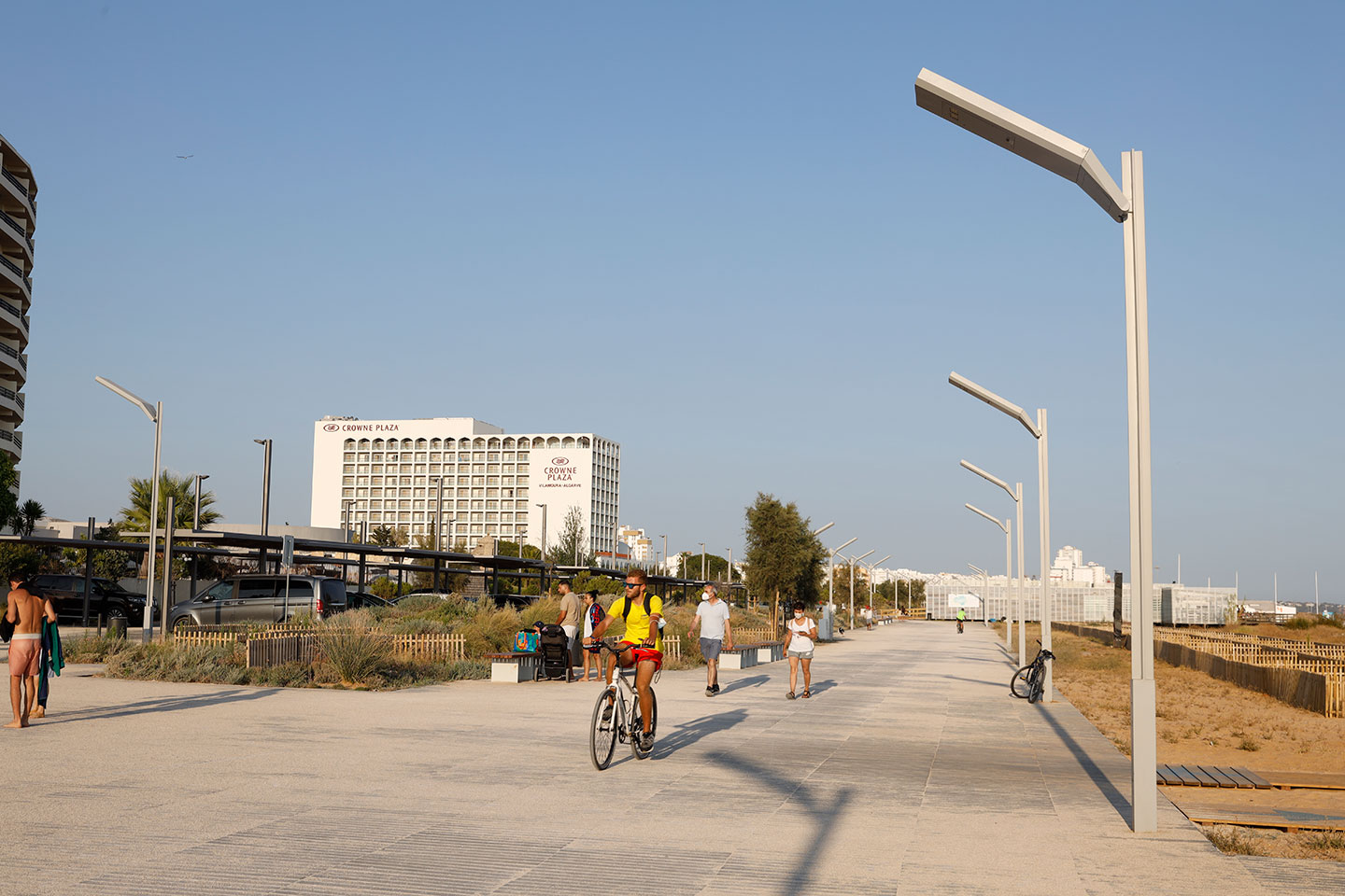 Aan elk uiteinde van de boulevard werd een parkeerplaats aangelegd om de toegang voor mensen die met de auto reizen te vergemakkelijken. Ook op de parkeerplaats in Quarteira werd het zonne-armatuur LINHA+ geïnstalleerd, terwijl de NEOS LED in de parkeergarage van Vilamoura voor veiligheid in het donker zorgt.