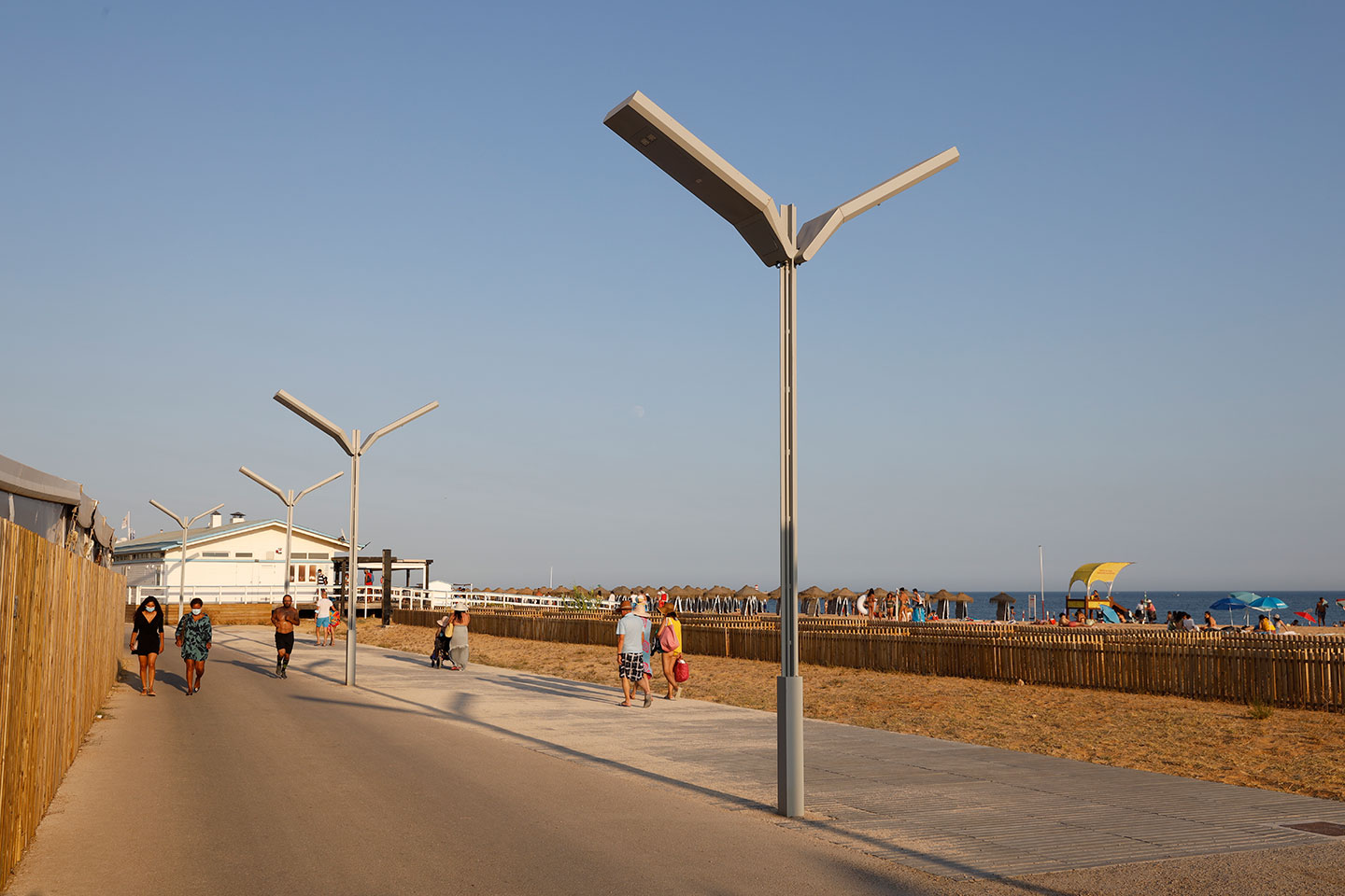 Dit armatuur op zonne-energie, ontworpen door PROAP en ontwikkeld en geproduceerd door Schréder, maakt gebruik van de nieuwste generatie verlichtingstechnologie en lithiumbatterijen met een lange levensduur van meer dan 10 jaar. Het beschikt ook over een innovatief systeem om verbinding te maken met het elektriciteitsnet als er ooit een gebrek aan zonne-energie is bij een onwaarschijnlijke langdurige afwezigheid van de zon.